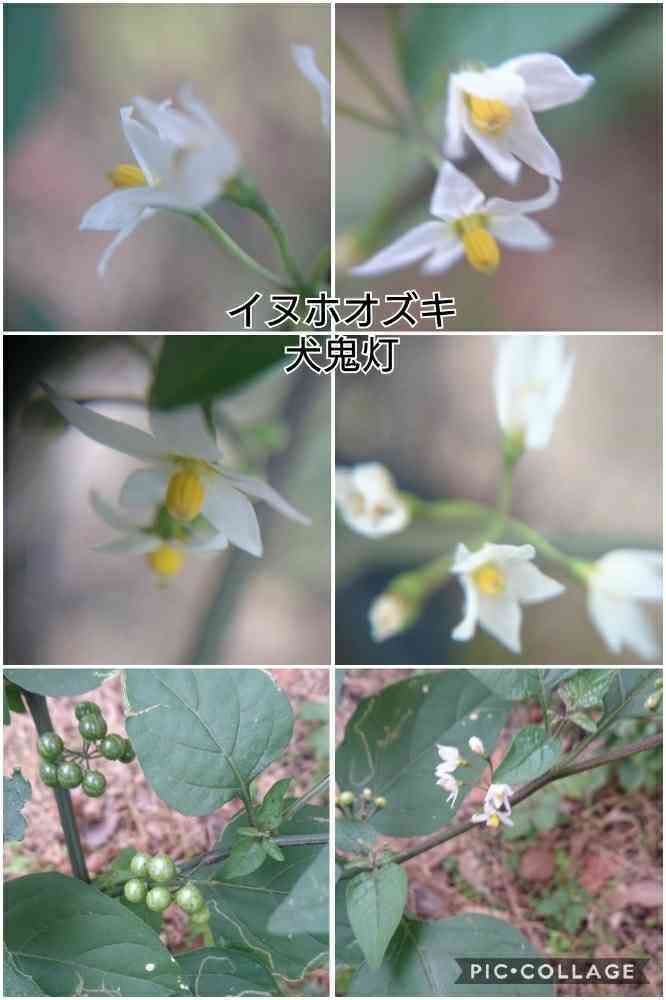 昨日図書館からの遊歩道でみつけたイヌホオズキ、花はタマサンゴに似てますが、葉が違うし実のつき方が違いますね。