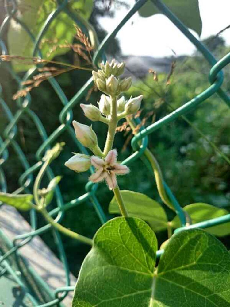 毎年、前の空き地に生えててカラスウリと絡まりあってます(^^;よく見ると花が可愛いので撮りました❢
