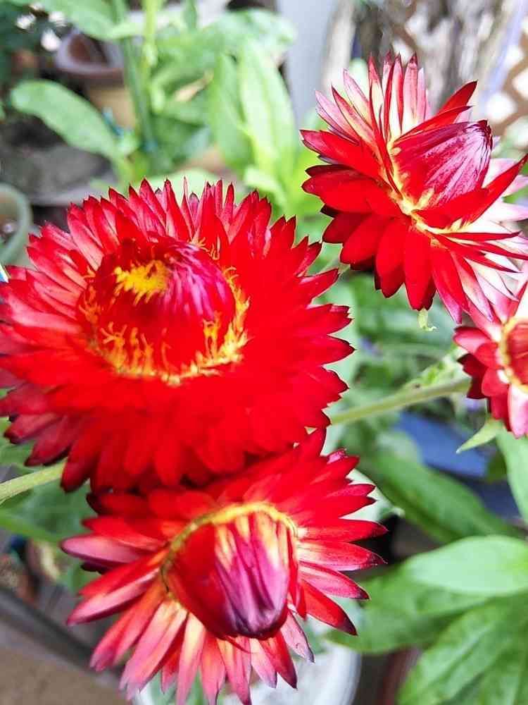 初めて育てたヘリクリサム。暖かいと開いて寒い雨の日はキュッと閉じてを繰り返しています。夏に咲くと思っていたのに、今頃咲く花だったの┅?