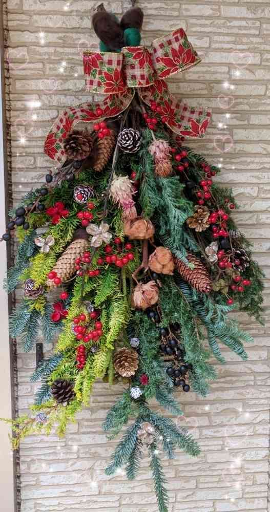 先日お花教室でスワッグ作成!クリスマススワッグ🎄