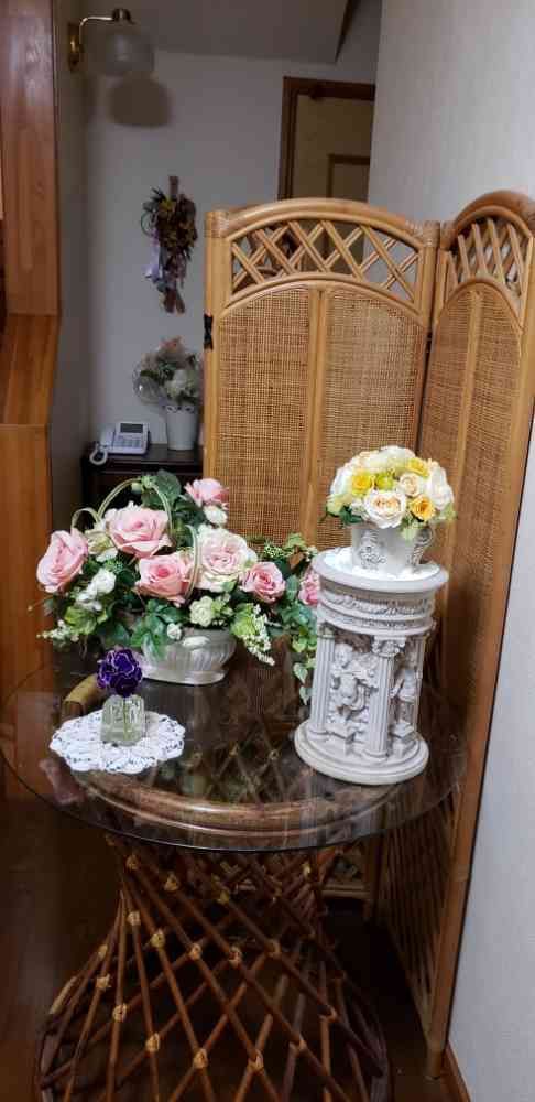 テーブル、花代、天使さん、プリザーブドフラワー、バラさん全部素敵ですね💕💕