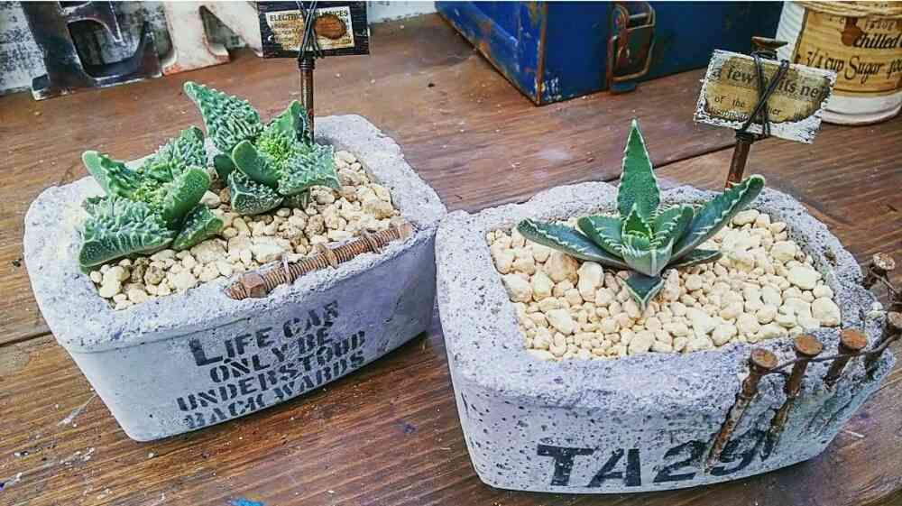 植物はサンス、ディッキア、アガベ系のこーゆーフォルムが大好きぢゃけ~コンクリに合うわぁ♡
