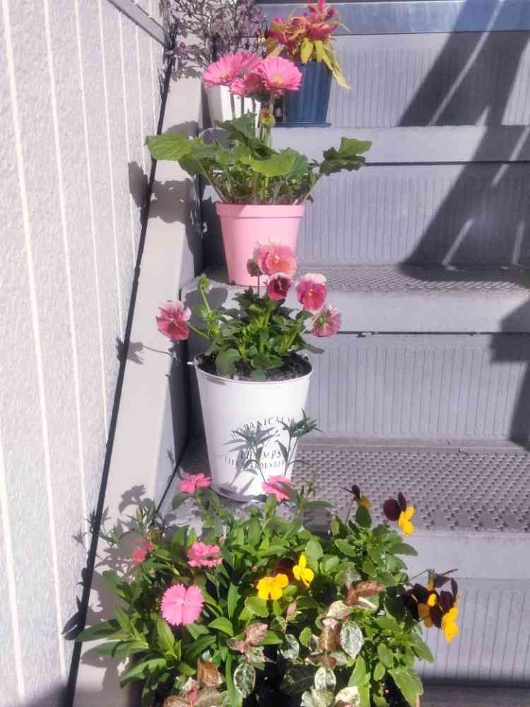 玄関横の階段が華やかになりました🏵️夏は絶対ここに植物は置けませんが、秋冬は寂しくなるので毎年花を置こうかなと思いました🍂❄️