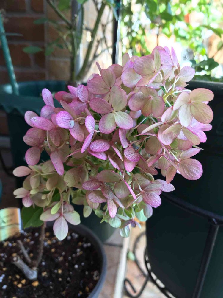 普通の紫陽花が終わった頃、白いお花が咲いて、だんだんライムグリーンに変わって、そのあと、こんなピンクになります💓💓