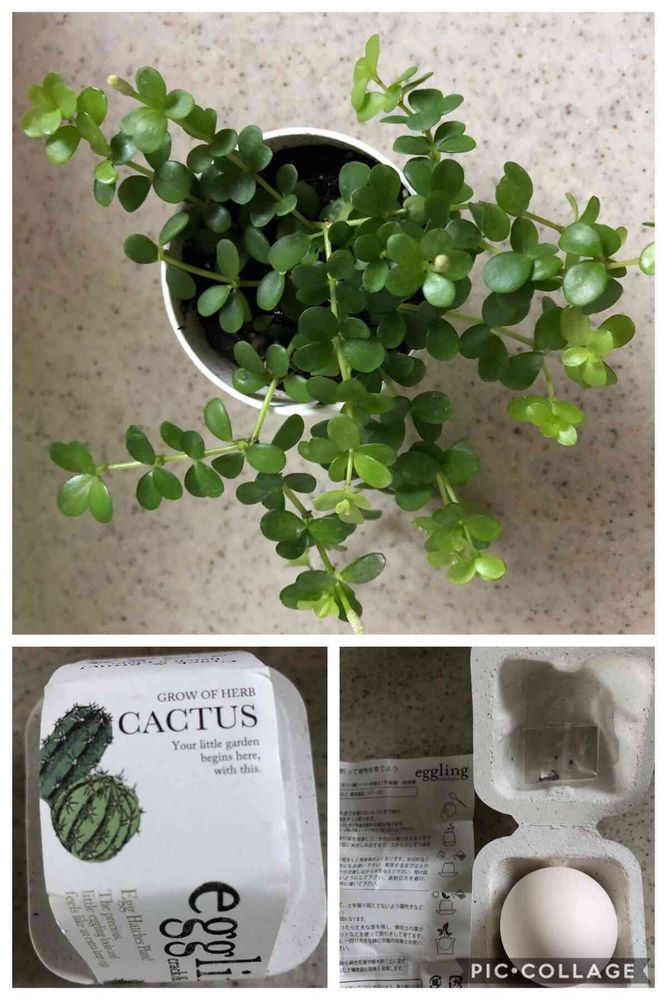 下のカクタスエッグ🥚 前から気になってて やっと購入😁 🥚割ったら 種も埋まっているのかと思ったら 違いました💦 🥚ちゃんは 下から土を入れてフタしてました! ペペロミア より 高かった〜( ◠‿◠ )