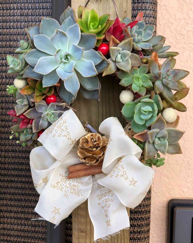 リースがやっとかけられる💕紅葉祭の赤みをプラスしてさらにいい感じ🤩たまらん!自力で増やせるようになったら、来年は家族のリースも作りたいな🍀