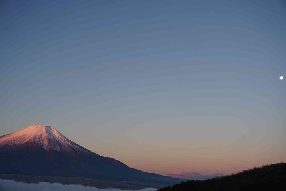 雲ひとつない朝焼けの富士山と雲海の景色は