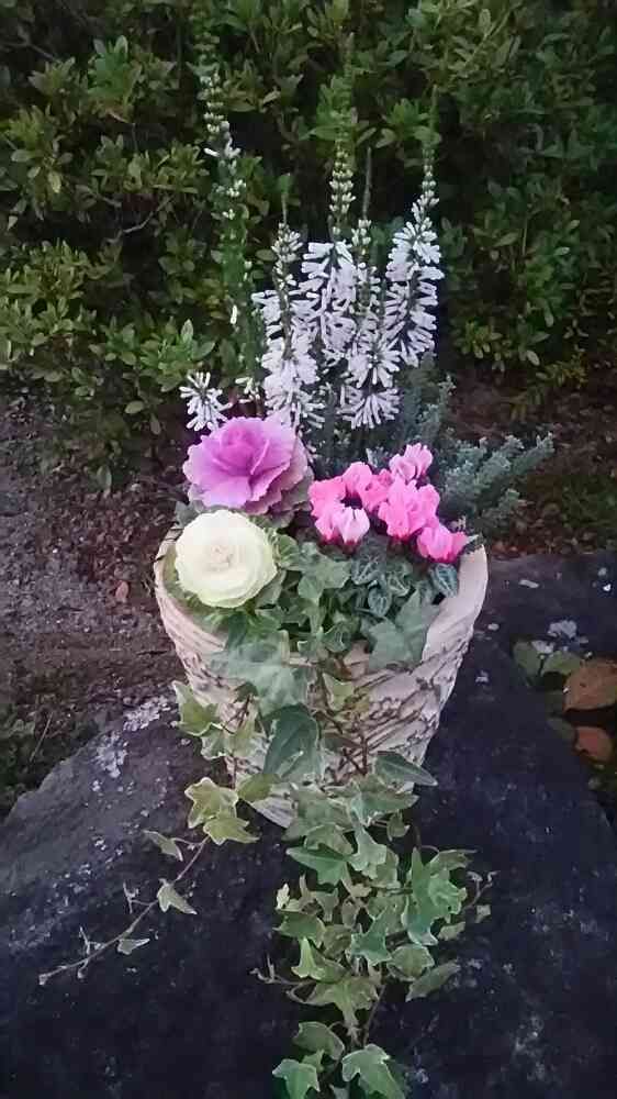 実家へ持っていく寄せ植えを作りました~が、写真で気づいた!葉牡丹が一列でイマイチ… 手直ししなきゃ(゜ロ゜)