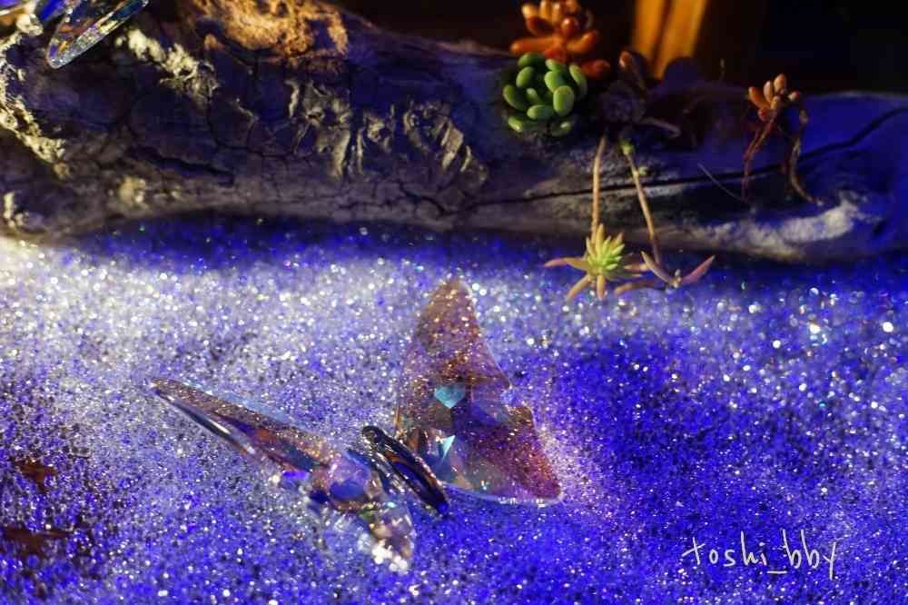 私も同じ場所で撮りましたが、撮る角度によってクリスタルガラスの蝶々や粒の色が変化して見えて本当に綺麗でした❗どうやって撮ろうか迷ってショーケースの辺りをついうろうろしてしまいました✴