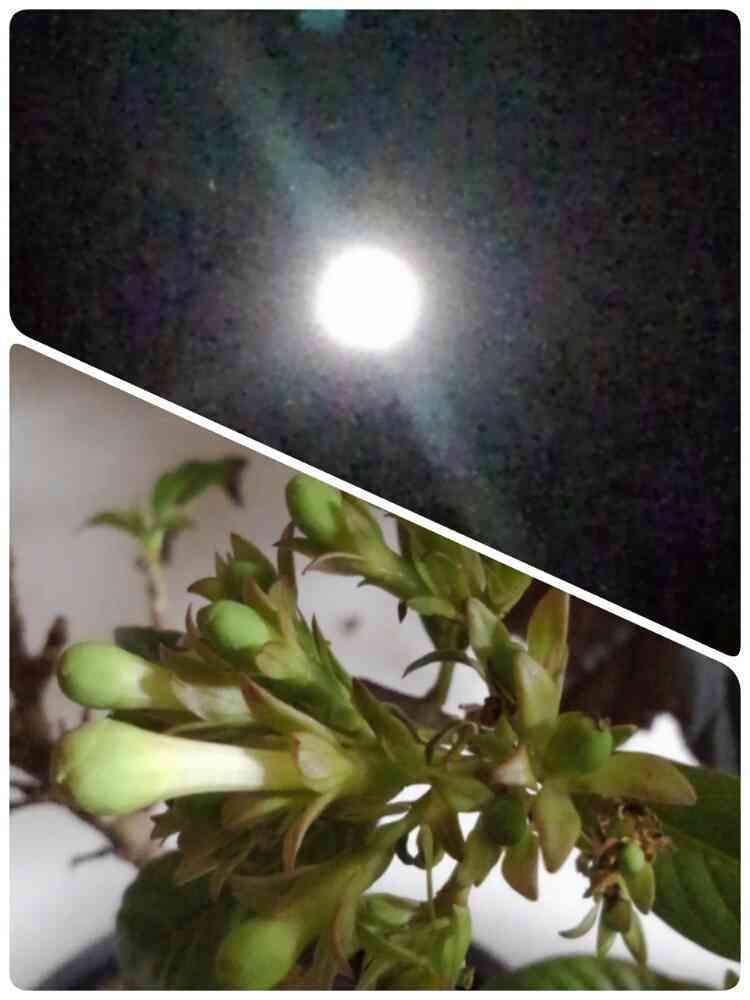 ボランティアも終わり今日から通常の生活に戻りますが皆さんのいいね返しが出来なくてご免なさいね🙇先日の真ん丸お月さんです🌑匂い桜2年目の蕾が開きそうです💗嬉しい~😆