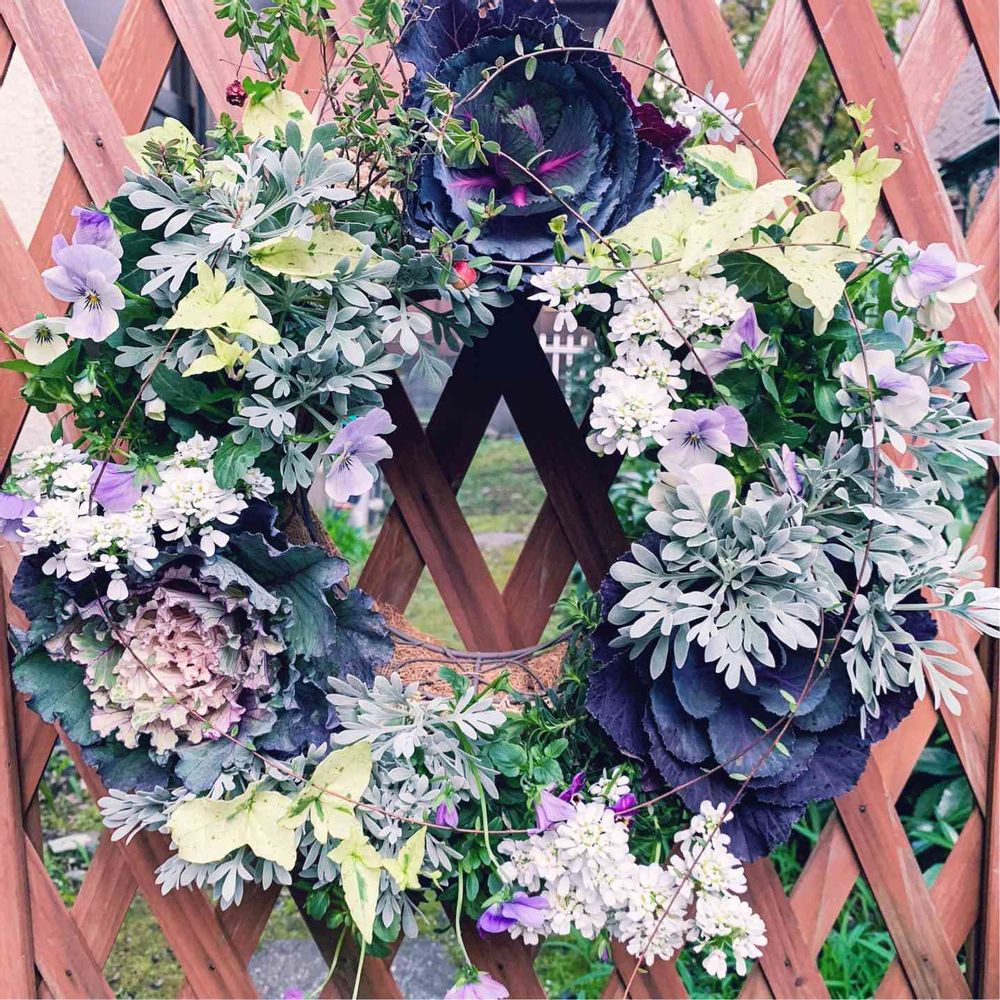 シックな色合いにしたくて黒いハボタンを2つ選びました。クランベリーはほとんど実が落ちてしまい残念。