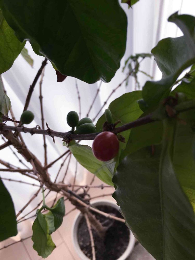 ようやく我が家のコーヒーの実が色づき始めました😊食べると甘いらしいのですが