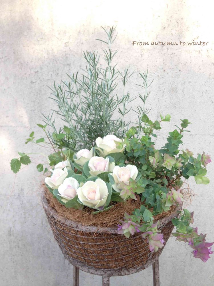 葉牡丹は植えた事がないのですが、marikoさんのアレンジを見ると、こんな素敵に寄せ植え出来るんだと 知る事が出来ました☺️