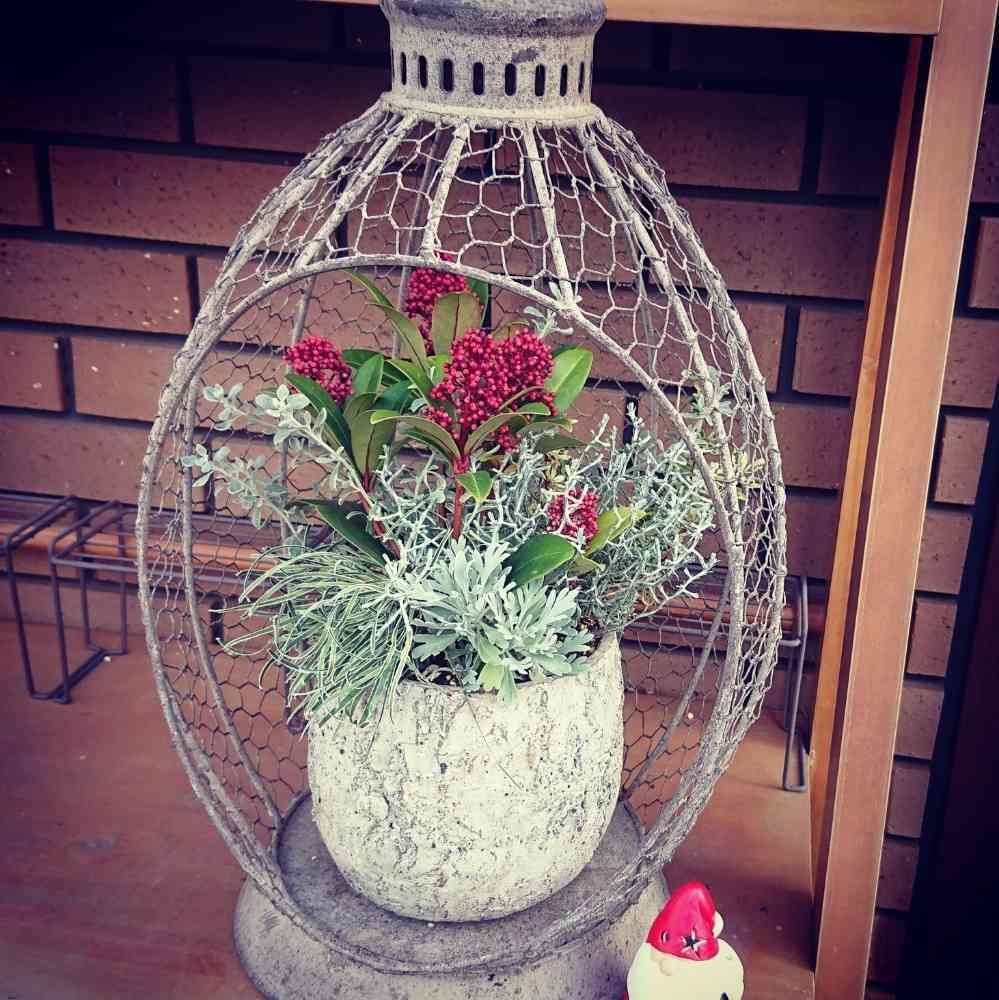 鳥かごにスキミアの寄せ植えを入れてみました😘
