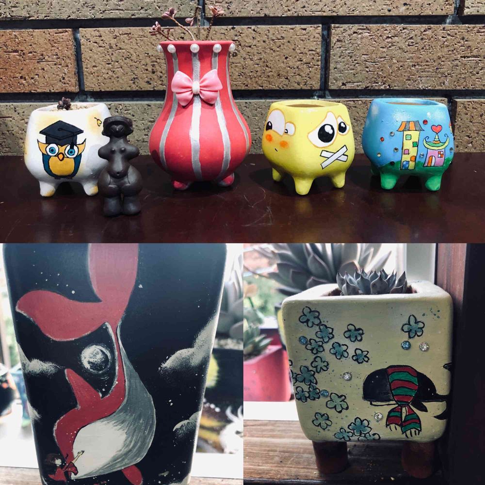 リメイク鉢シリーズその2です😅上の4つは作者より頂いた物。下のpicsはその作者私物です。何を植えるか?悩むのもちょっと楽しみ😊 縄文のビーナスちゃん7㎝