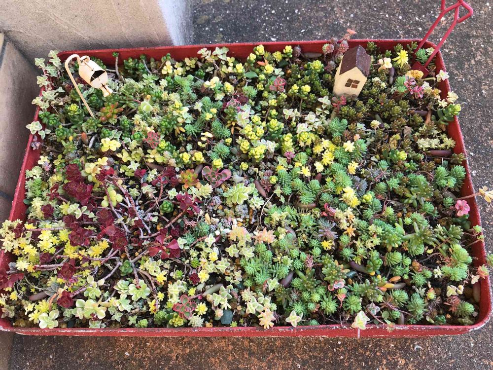 セダムだけでもカラフルでゴージャスな鉢になるんですね😍