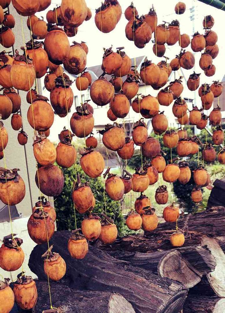 実家に行ったら、母の手作りの干し柿が干してあった。