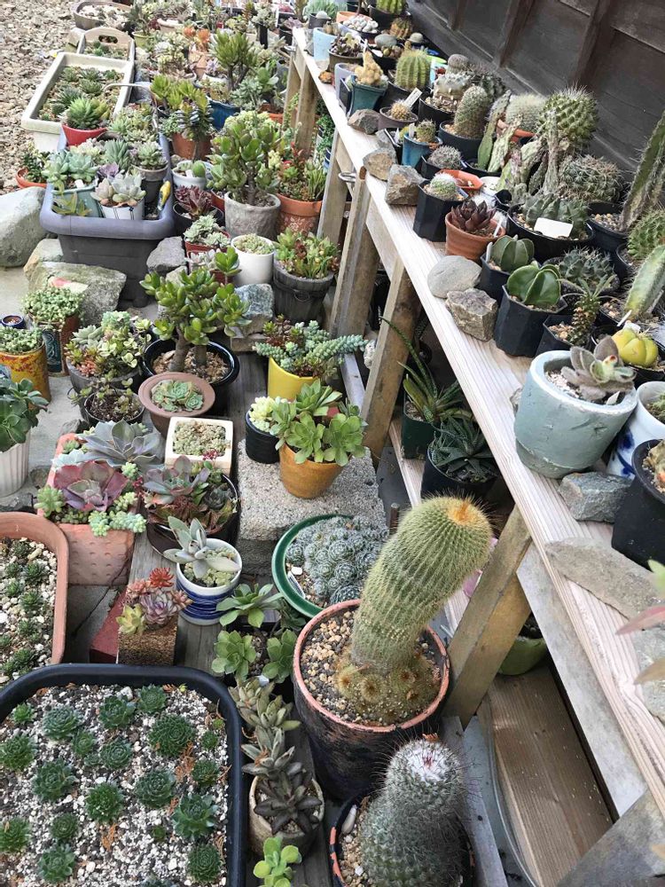 ここにあるのはおもにサボテンとベンケイソウ科の多肉。