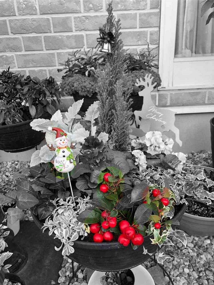 小さな庭,花のある暮らし,クリスマスの寄せ植えの投稿画像