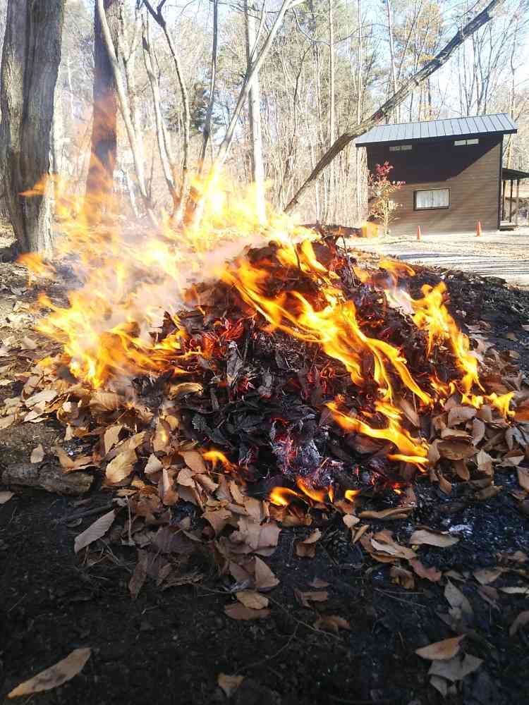 庭の落ち葉を焼いてます。ついでに焼き芋も!