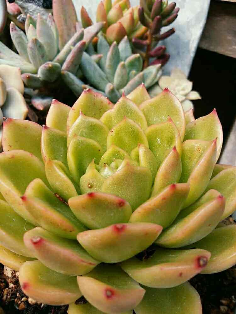 マロさんの小さな庭,植中毒,エケベリア属アガボイデスプリドニス(グリーンフォーム)の投稿画像