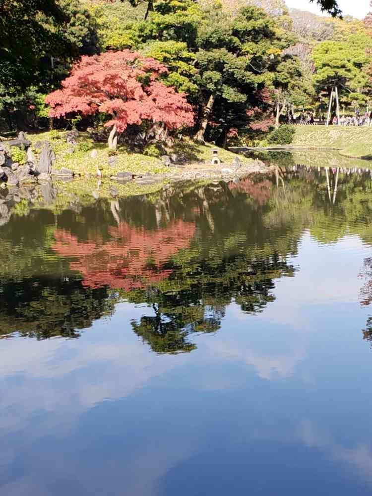 水鏡に映る紅葉🍁と青空