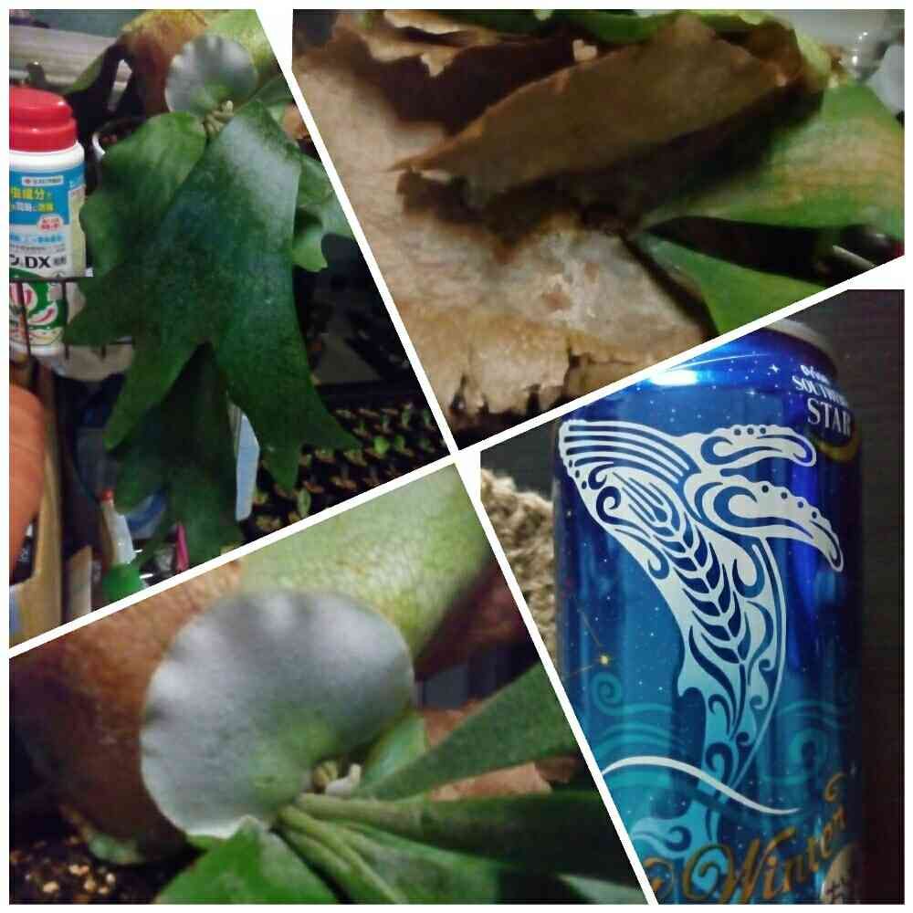 こんにちは👋😃ビカクシダの貯水葉はこんなもんですよ。次々に古い葉っぱを巻くように出て来ます。コウモリは二種の葉っぱが出ます。直射日光はさけてね。軒下に❗️葉っぱが白い粉が出てくるんでくれぐれも拭き取らないで下さい🤗