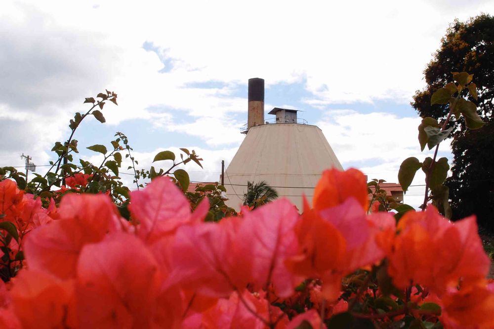 ワイアルアのサトウキビ工場とブーゲンビレア