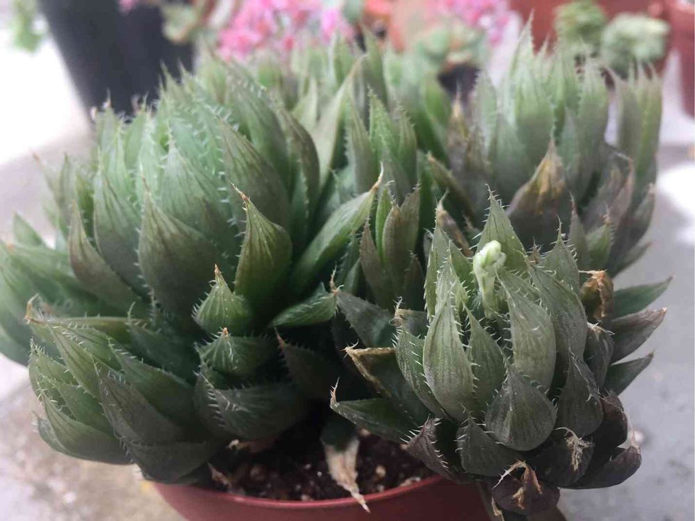 去年夫に貰ったハオルチアが一年で鉢から溢れそうなくらいもりもりになりました*¨*\(๑•∀•๑)/*¨*