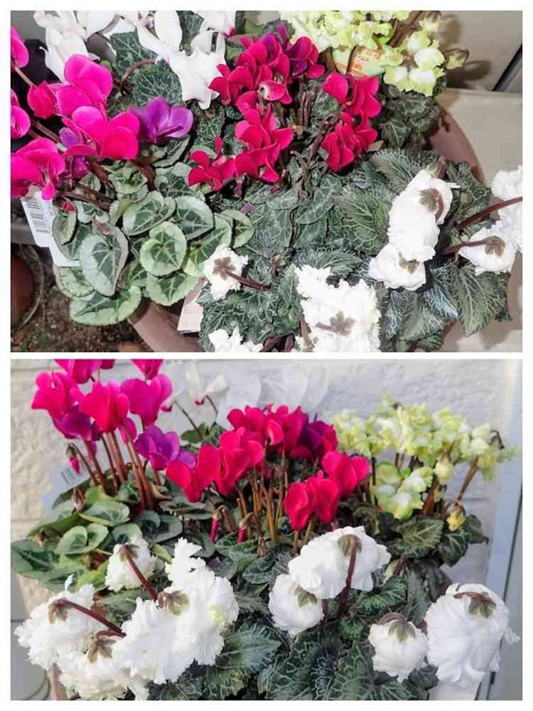 少し前に投稿した、ベル咲きのシクラメンと同じような咲き方をするガーデンシクラメン、見つけたので早速買ってしまいました~♪ベリッシマ・ホワイトです(*^▽^*)当然ながら、植物の大きさも、株のボリュームもすべて小ぶりで、かわいらしいものです。二株買いました。また、よく似た咲き方で、グリーン系の、森の妖精と、他に3種購入。どういう風に使うかはまだ決めて無かったり。。。^^;;;