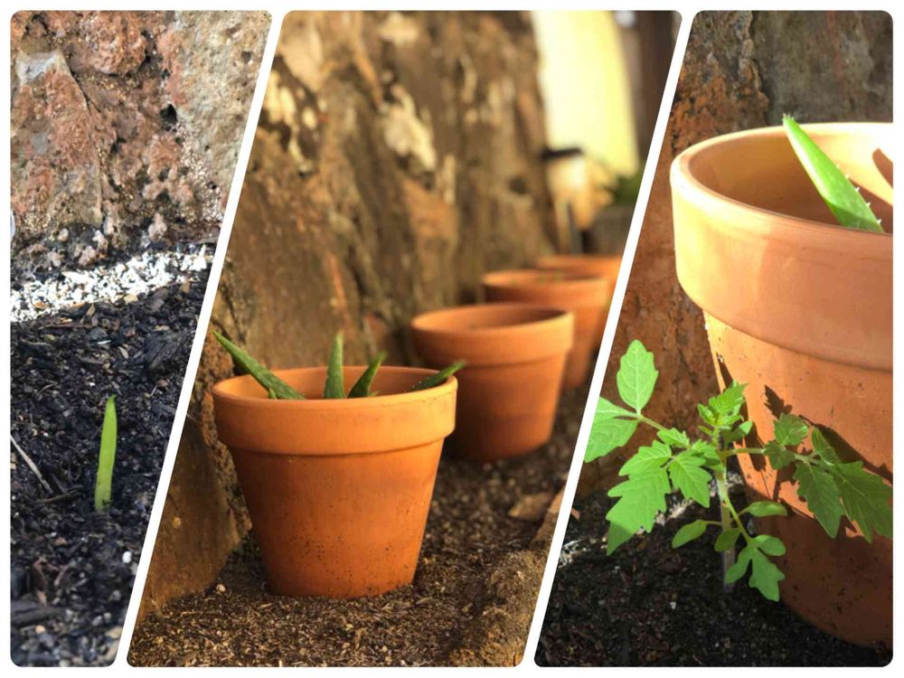 ゲート内に置いてあるアロエの鉢たちの間からなんだかトマトと似た芽🌱が出てきたり、どうも多肉ちゃんぽいのが出てきたり🤔 抜かずにしばらく様子見で。