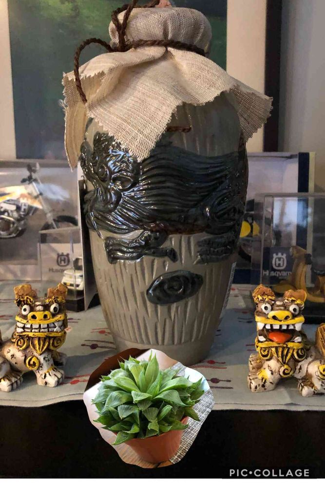 お父ちゃんの誕生日祝いでもらった泡盛早く飲んでくれないと花瓶に出来ないでしょう❣️