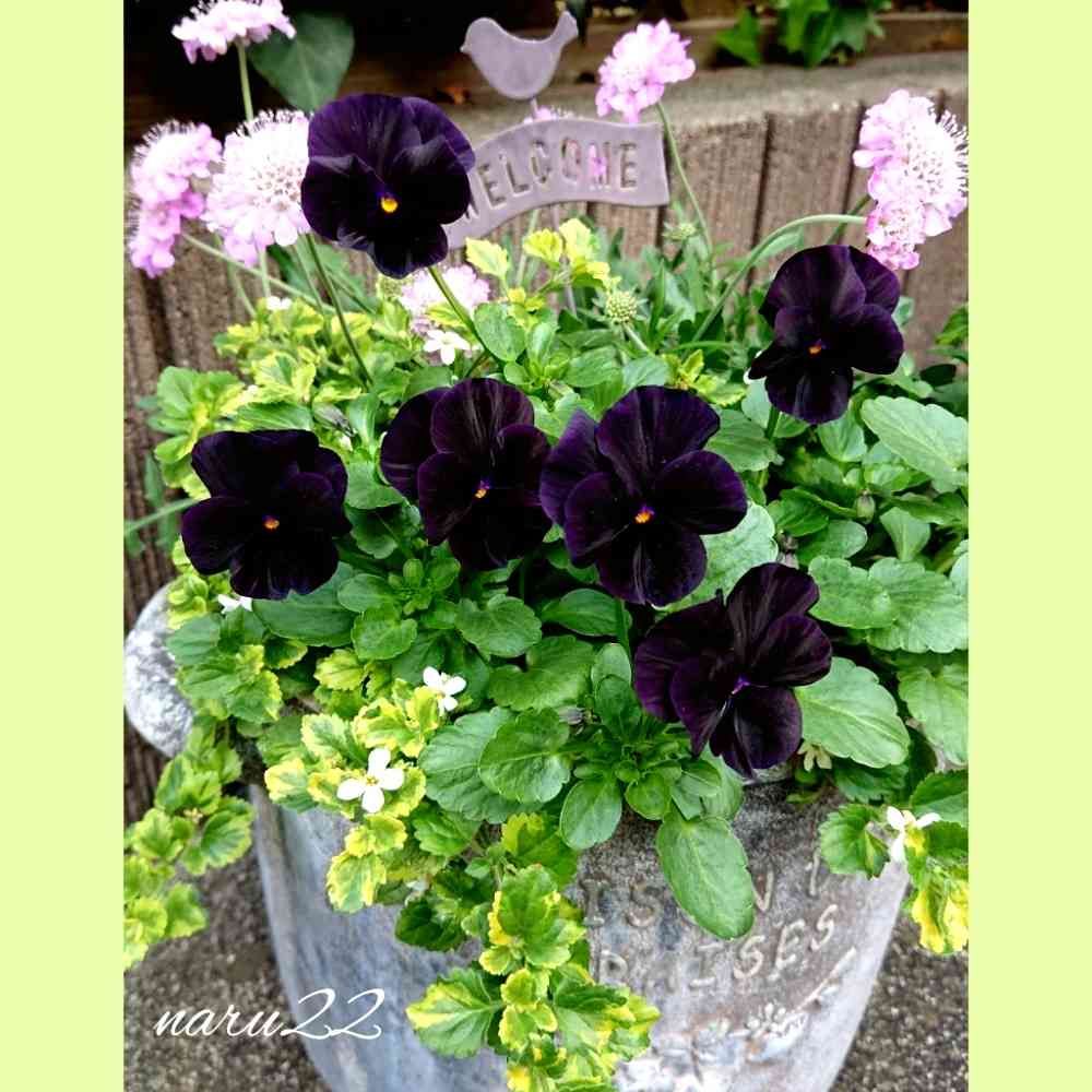 先日投稿したスカビオサ ピンクッションピンク💗ブラックビオラさんと寄せていました😊🎶