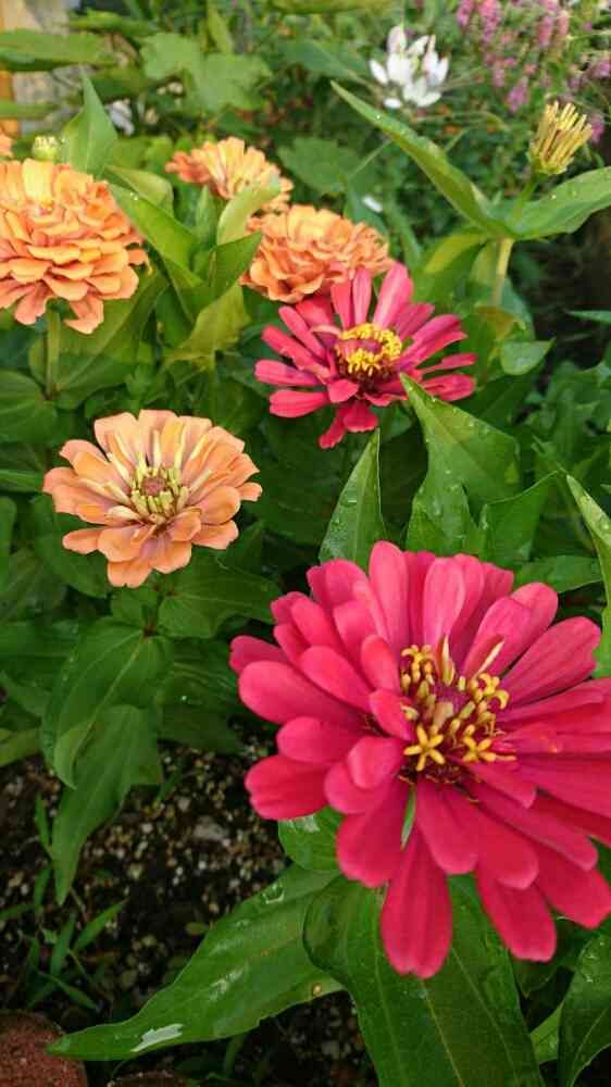 ジニア可愛い〜〜オレンジとピンクがよく合って素敵です✨暑さに負けずにいい子ですね😊