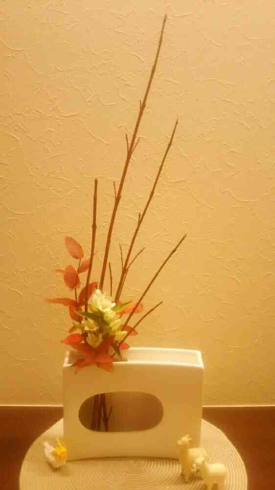 下段には剣山は使わずに、サンゴミズキの長さを調節してはめ込んでいるだけにしています(^-^)