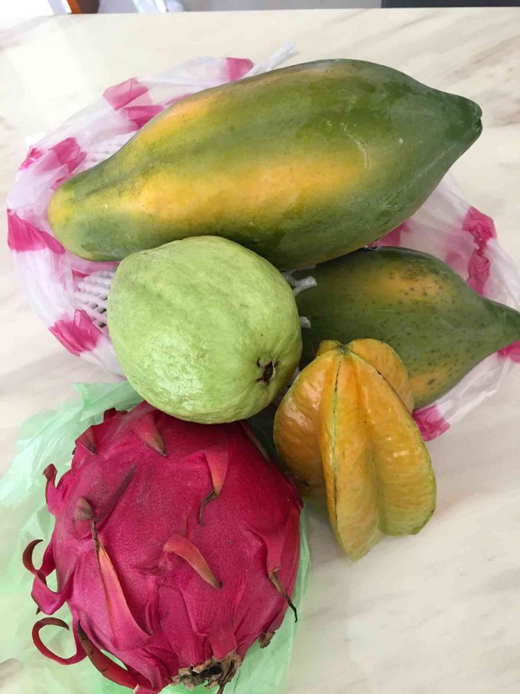 パパイヤ、スターフルーツ、ドラゴンフルーツ(赤)は、わかりましたが、グァバは、ジュースを飲んだことがあるだけなので分かりませんでした😆