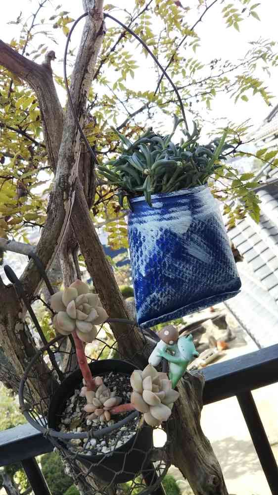 ヒロちゃんの青いリメバッグに、イルカ植えたよ🐬💕