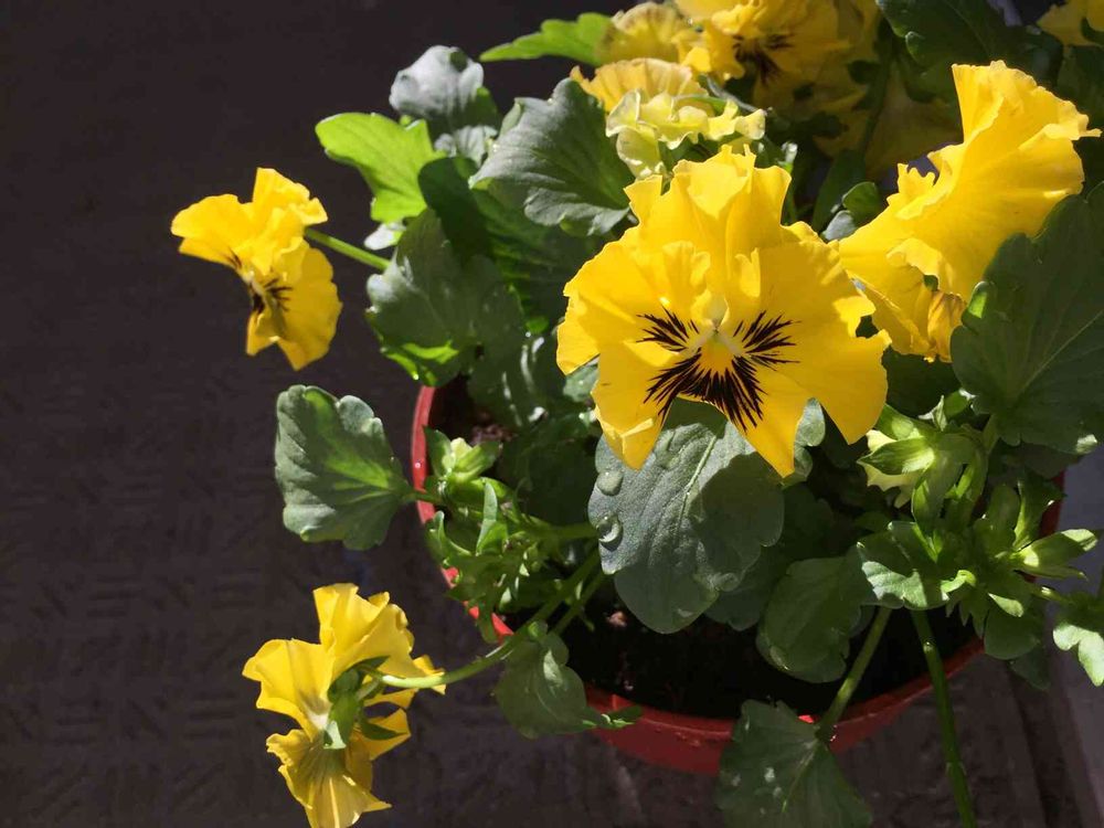 フリルビオラ、プランターに植え替えました!ベランダでお花を育てるのははじめてです☀️ベランダに出て、明るい花があると元気が出ますね😊