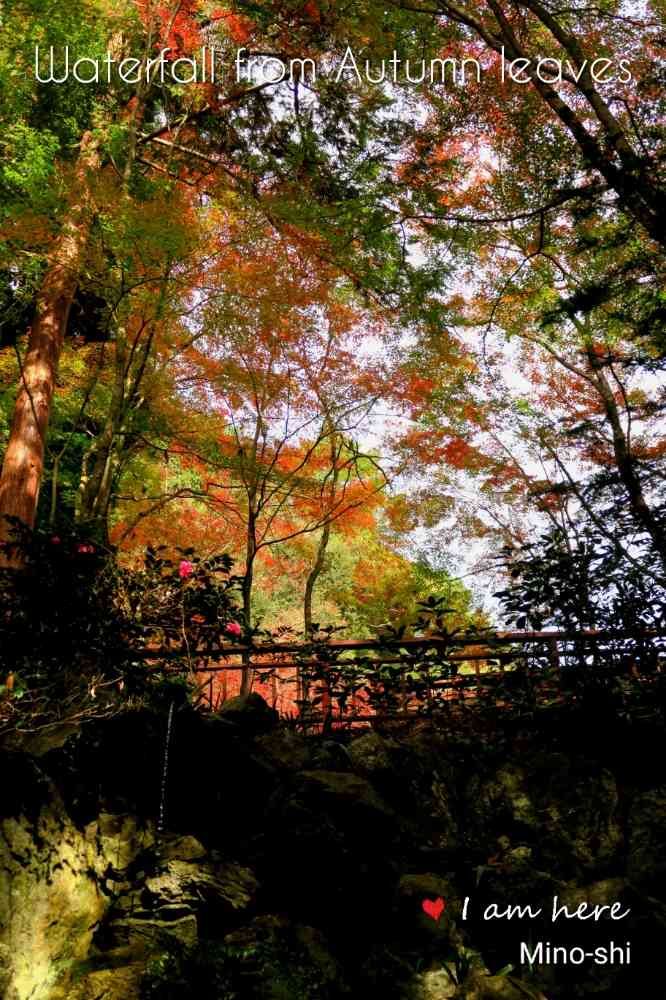 小さな滝がモミジ、サザンカ、杉の間から落ちている。💧🍂🌲😄⬅️見えない方は左下を参照。👀👓🕶️