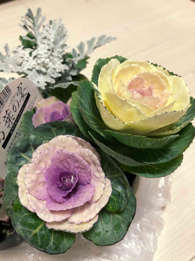 店頭にあった花々、ミニ葉牡丹が可愛くて、とうとうまたお迎えしてしまった、場所どうしようかな。