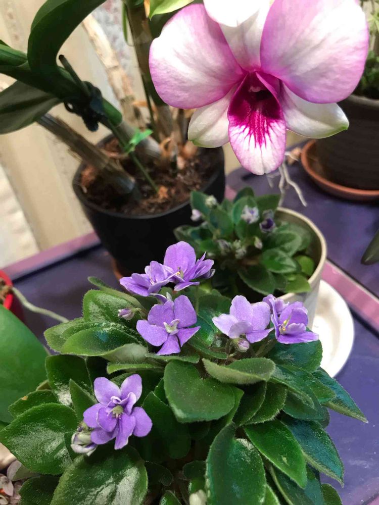 上にちょっとだけデンファレ 花すみれも、色が濃くなってきましたよ☺️