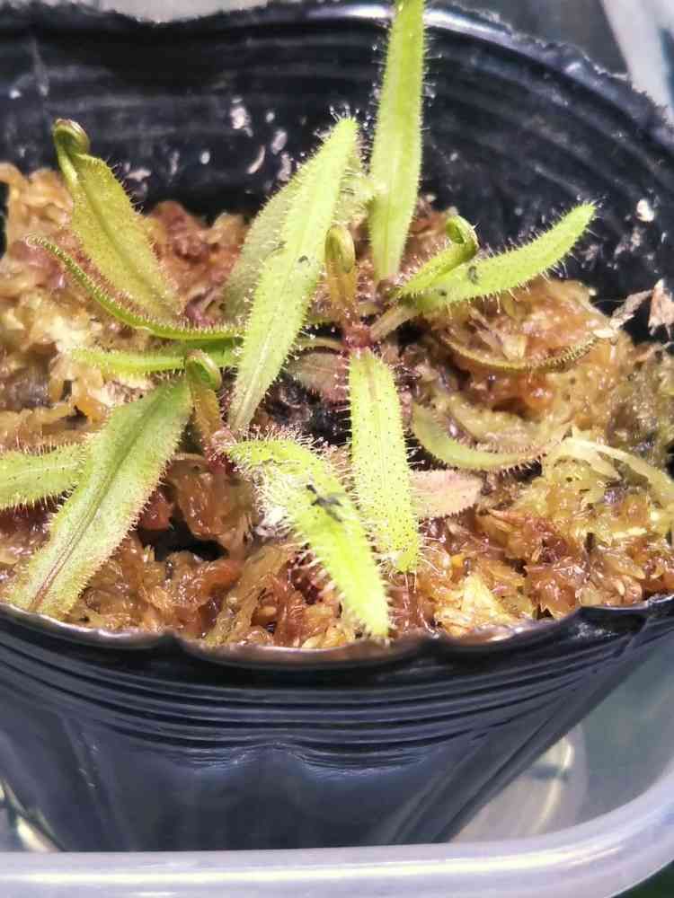 昨晩に簡易温室に仕込んだドロセラ・アデラエにコバエがかかってる✨いい仕事だ😋