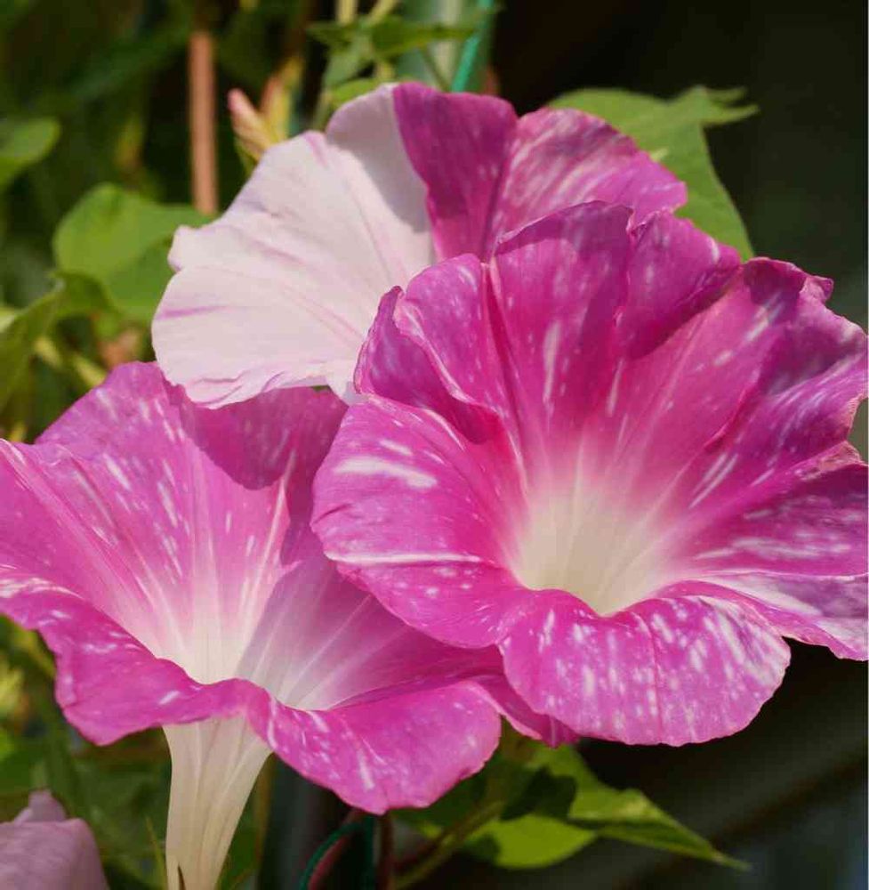重なるようにして咲いた3輪の朝顔。仲よく寄り添っているようにも見えます(^O^)