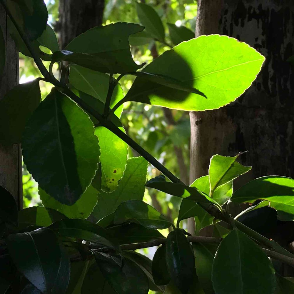虫食いもある普通の葉っぱですが、葉っぱ越しの向こう眺めと、この暗さと明るさに惹かれました☺️