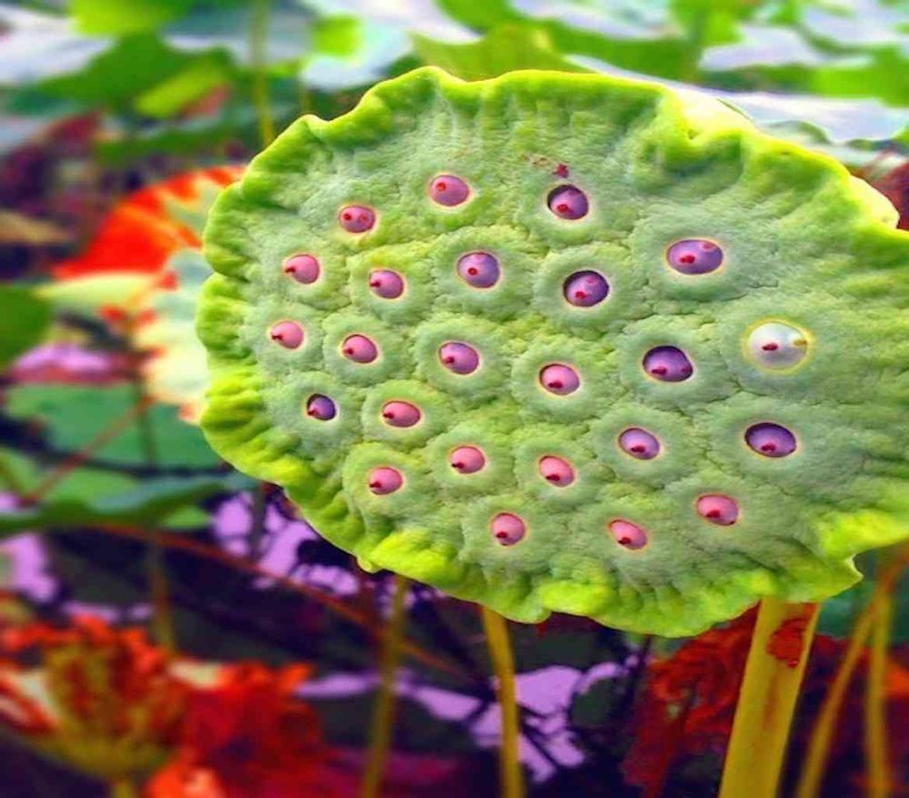 鮮やかな緑色に目玉のように妖艶な雰囲気を放つ紫色の種に