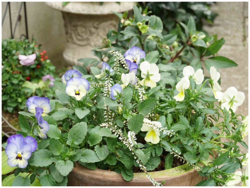 清楚で素敵な色合わせの寄せ植えですね~💙