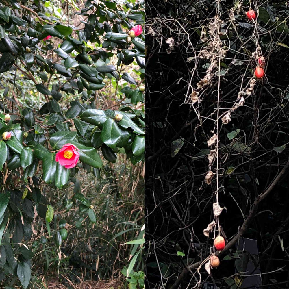 お出かけ先,椿の花,カラスウリの実✨の投稿画像