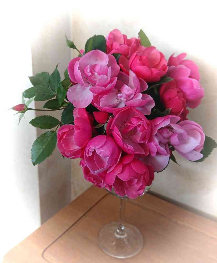 アンジェラ🌹だけだけど、まだ少し咲いてたからワイングラスにポイッ🎵だけ(^o^;)💦