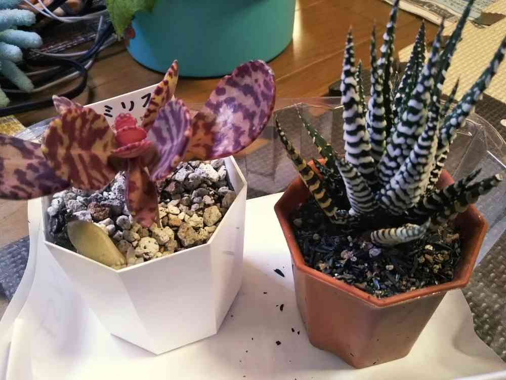 戦利品。カランコエのフミリスはまさかの発見だった!欲しかったやつ(*≧∀≦*) 十二の巻は珍しくないけど、フミリスのトッケイヤモリみたいな柄が堪らん✨