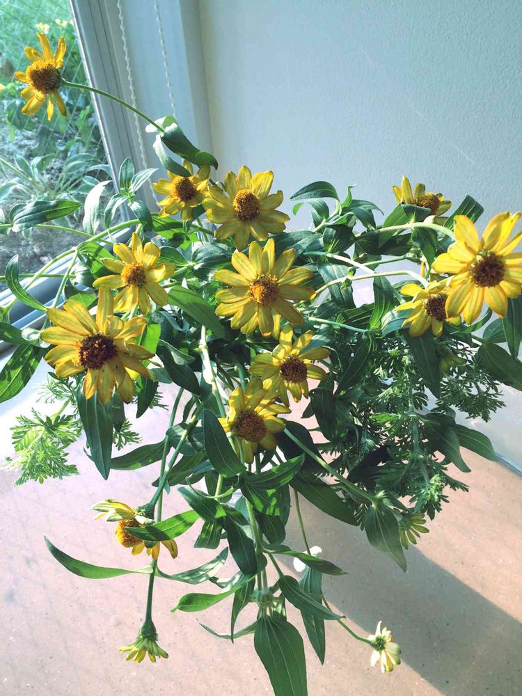 きんちゃんさんのお出かけ先,黄色い花,ガラス瓶の投稿画像